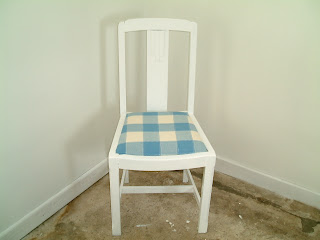 Whilst renovating my cottage I came across some odd chairs. Me being me I decided to paint them white and whilst in the local hardware shop I came across a set of blue and white tea towels, put them together and this is what you get a recipe for some gorgeous chairs … if I say so myself.