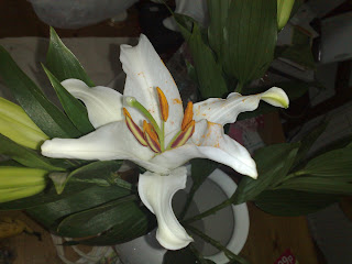 I smell: the beautiful lilies I bought today in M&S and feel guilty about