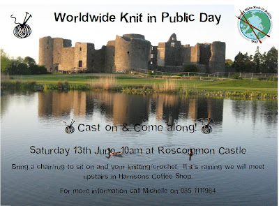 I’m organising a KIP (knit in public) event for this weekend. Anyone who wants to come along please do. We’re meeting on the steps at the front of Roscommon Castle on Saturday 13th June at 10.00 am