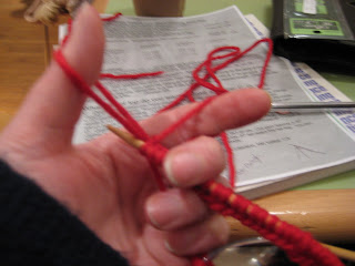 Today I headed to a knitting shop with Aimee where we hung out all day knitting. It’s so cool – on 14th Street between 2nd and 3rd. They have lots of tables where you can hang out and knit and tea and coffee too :o) It was the only place to be today as it was FREEEEEEZING, no seriously it was FREEEEEEEZING. I started my beautiful red hat (the wool and needles were a christmas present from Aimee). Alas I had to start it and finish it about 5 times due to the gauge being wrong and then twisting the stitches with the circular needles. I was so peeved at one point I was ready to go home but thanks to Aimee I stuck with it. I also learned a new cast on technique called the sling shot cast on that was very cool.