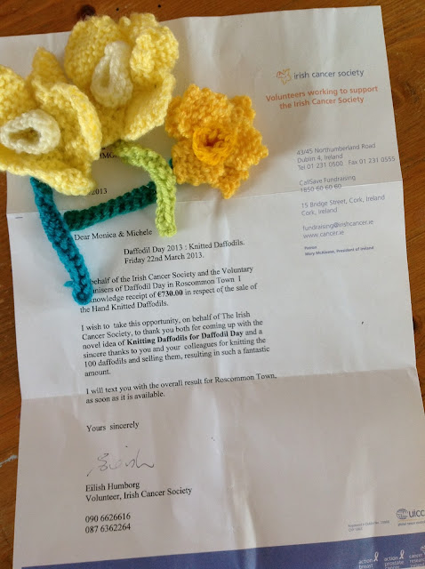 The plan was to knit 100 daffodils and sell them for 5 euro each, all of which would go to Irish Cancer Society.